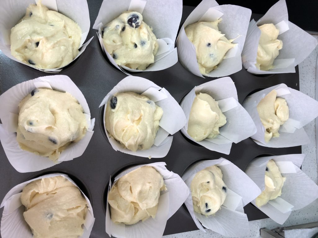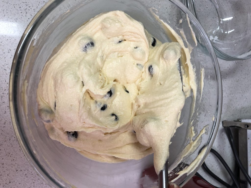 STEP 4: Gently Fold the blueberry into the batter with spatula 用抹刀將藍莓小心混合至麵糊中