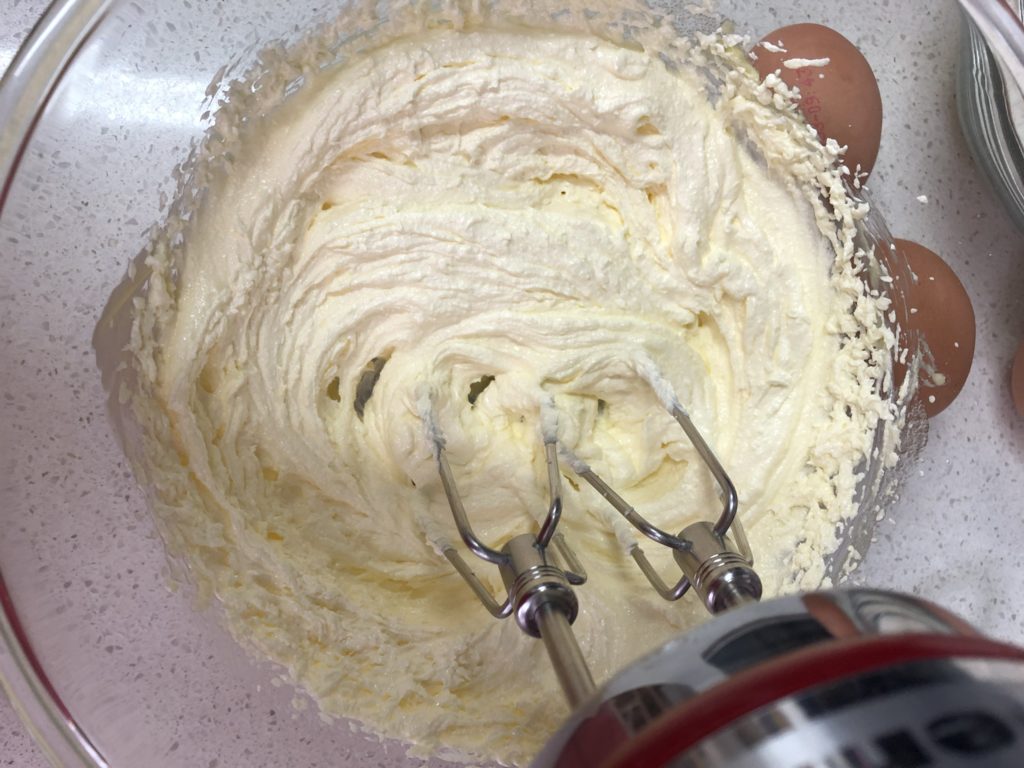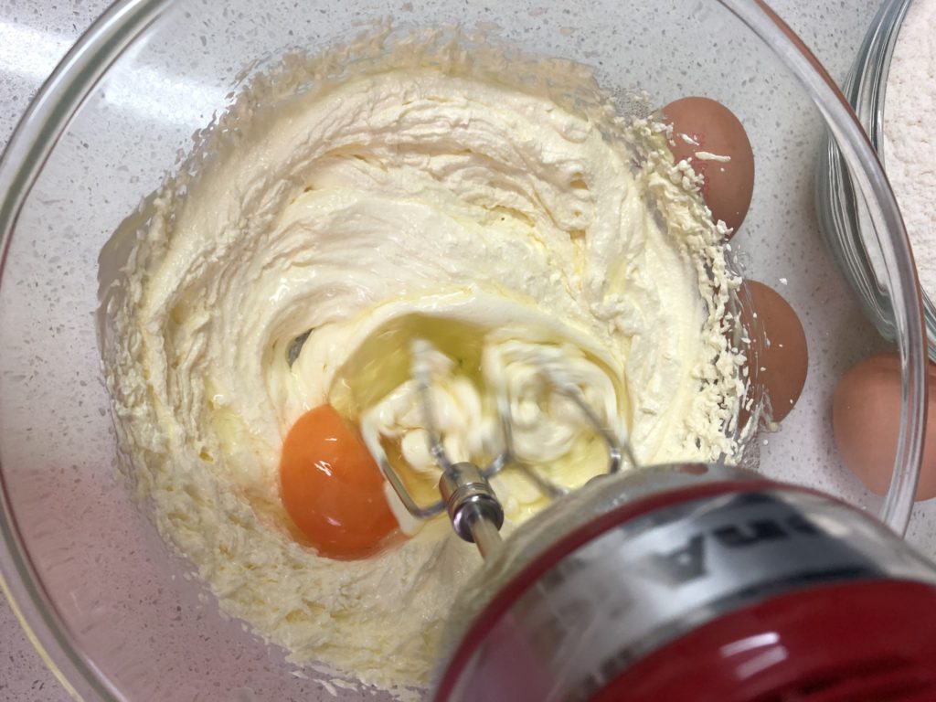 STEP 2: Add in the egg one by one, mix in high speed until well combined 將雞蛋逐隻加入打至混合